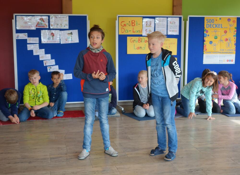 Einmal im Monat treffen wir uns zu unserer Schulversammlung in der Aula. Neben dem Feiern der Geburtstage vom Vormonat steht immer ein besonderes Thema im Mittelpunkt, das in der Regel die Kinder oder manchmal auch die Lehrer bestimmen.